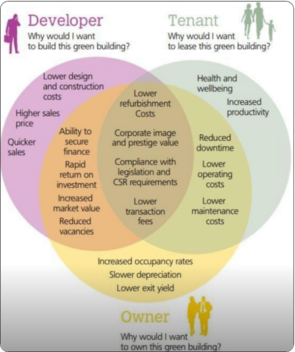 Green buildings create value at every level of the real estate ecosystem — from blueprint to long-term asset management.